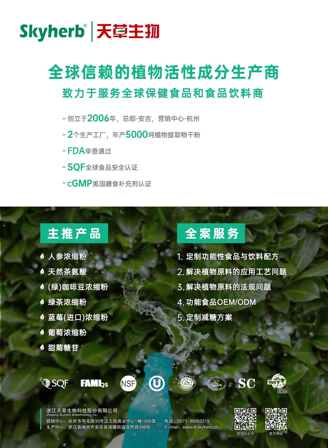 “天然產(chǎn)品,草本生活”,天草生物一直專注于天然食品原料與植物功能成分的開發(fā)和應(yīng)用,致力于服務(wù)全球保健食品和食品飲料企業(yè)。
